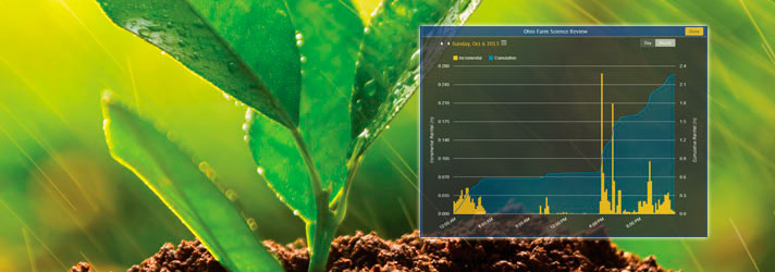 Просматривайте данные по осадкам непосредственно на панели управления Connected Farm или с помощью уведомлений по электронной почте, так вы сэкономите время на объезде разнесенных по территории дождемеров и ручной записи данных.
