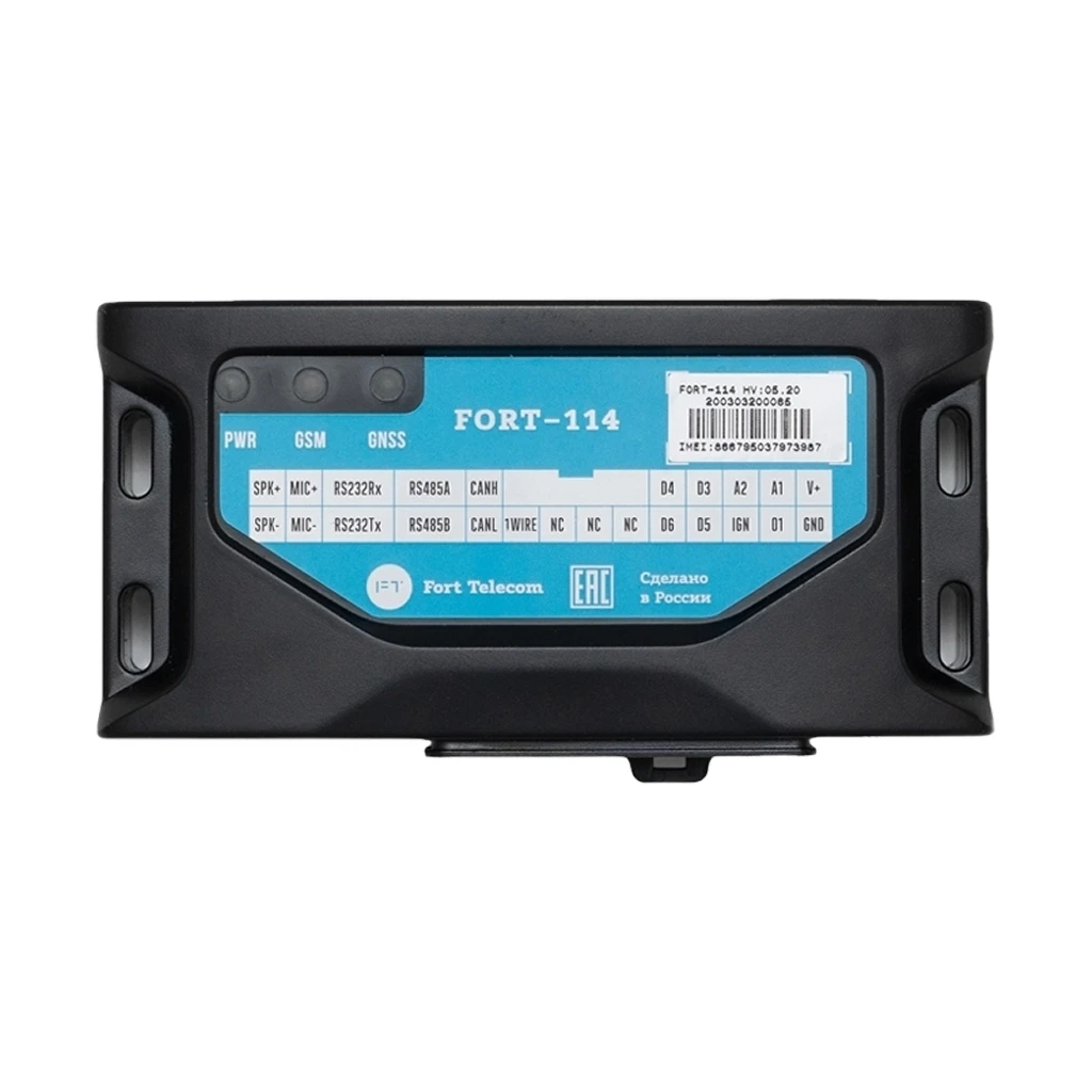Терминал FORT-114 предназначен для мониторинга и удалённого управления транспортными средствами. Благодаря наличию Bluetooth, FORT-114 поддерживает работу с беспроводными датчиками, в том числе ДУТы, а в некоторых случаях даже некоторые проводные модели можно удалённо настраивать. Встроенный CAN-сканнер, AlgorithmiX lite, улучшенная защита по питанию, 2 слота под SIM, RS-232, RS-485, 2 выхода, встроенный зуммер, улучшенные аналоговые входы. Список поддерживаемых беспроводных датчиков уровня топлива постоянно пополняется.