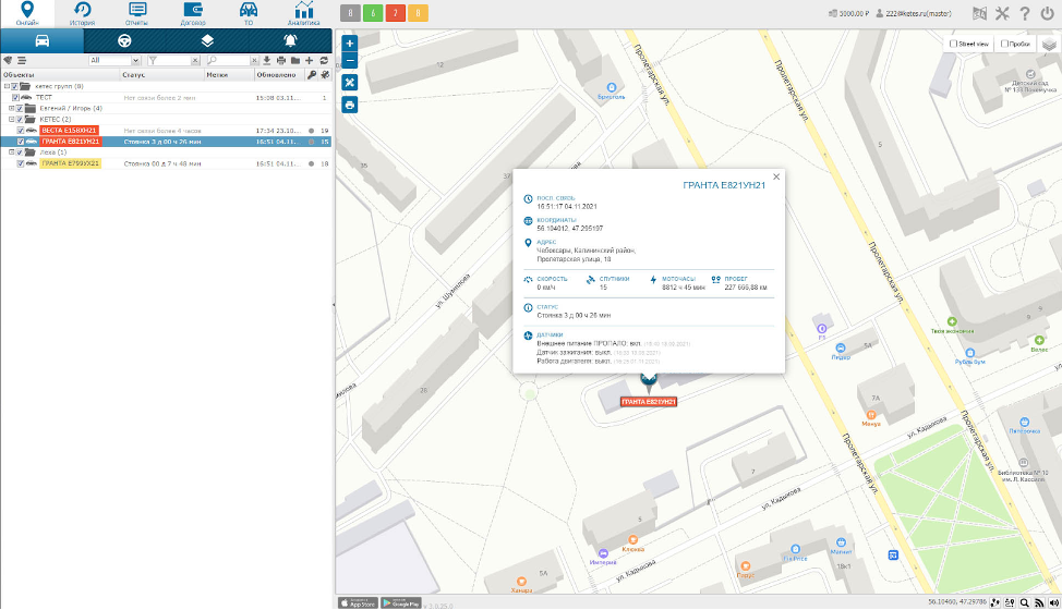 поддерживает мониторинг движения автомобиля онлайн