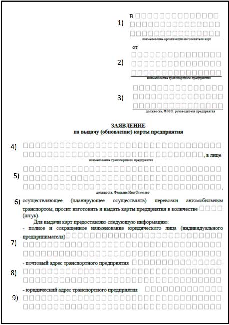 В позиции 2) указывается наименование предприятия (юридического лица или индивидуального предприятия), подающего заявление на выдачу карты предприятия.