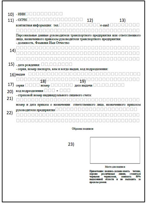 В позиции 18) указывается номер паспорта руководителя предприятия, или ответственного лица, назначенного приказом по предприятию, на которое оформляется карта.