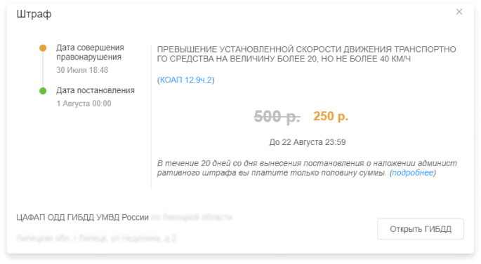 по факту штрафа отображается также детализированная информация о